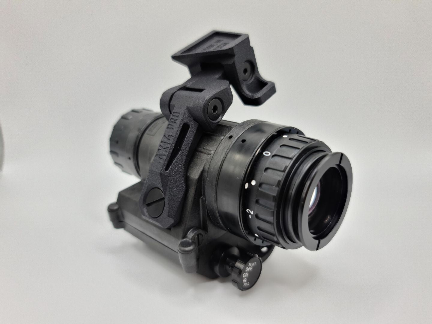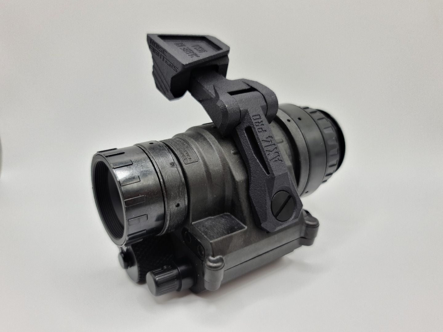 The Noisefighters polymer AX14-PRO J-arm is a great budget option for the PVS-14 and Nocturn TANTO monocular. Weighing at 0.9 oz, this light J-arm has popular end-user features such as articulation, milspec anodized aluminum hardware, helmet stowage, and improved stability. Made with high performance polymer from Arkema, the durable dovetail will link up to Wilcox and other brands. The AX14-PRO is made and assembled in the U.S.A. with a no-questions asked transferable lifetime warranty.