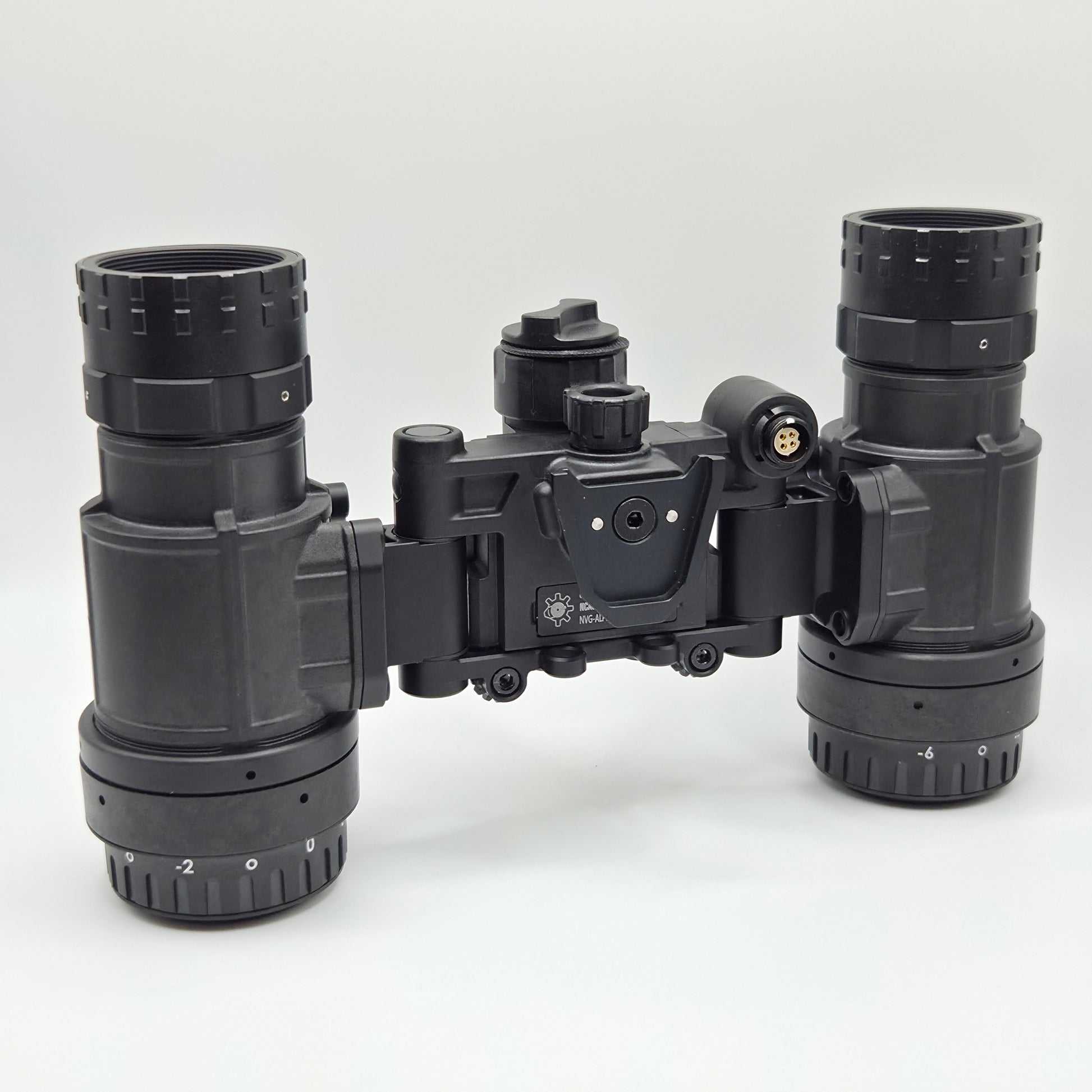The NVG-ALPHA is a rugged, full-featured night vision binocular built with a blend of polymer and aluminum. Polymer components keep the system lightweight, while aluminum is strategically used in critical areas for enhanced durability.